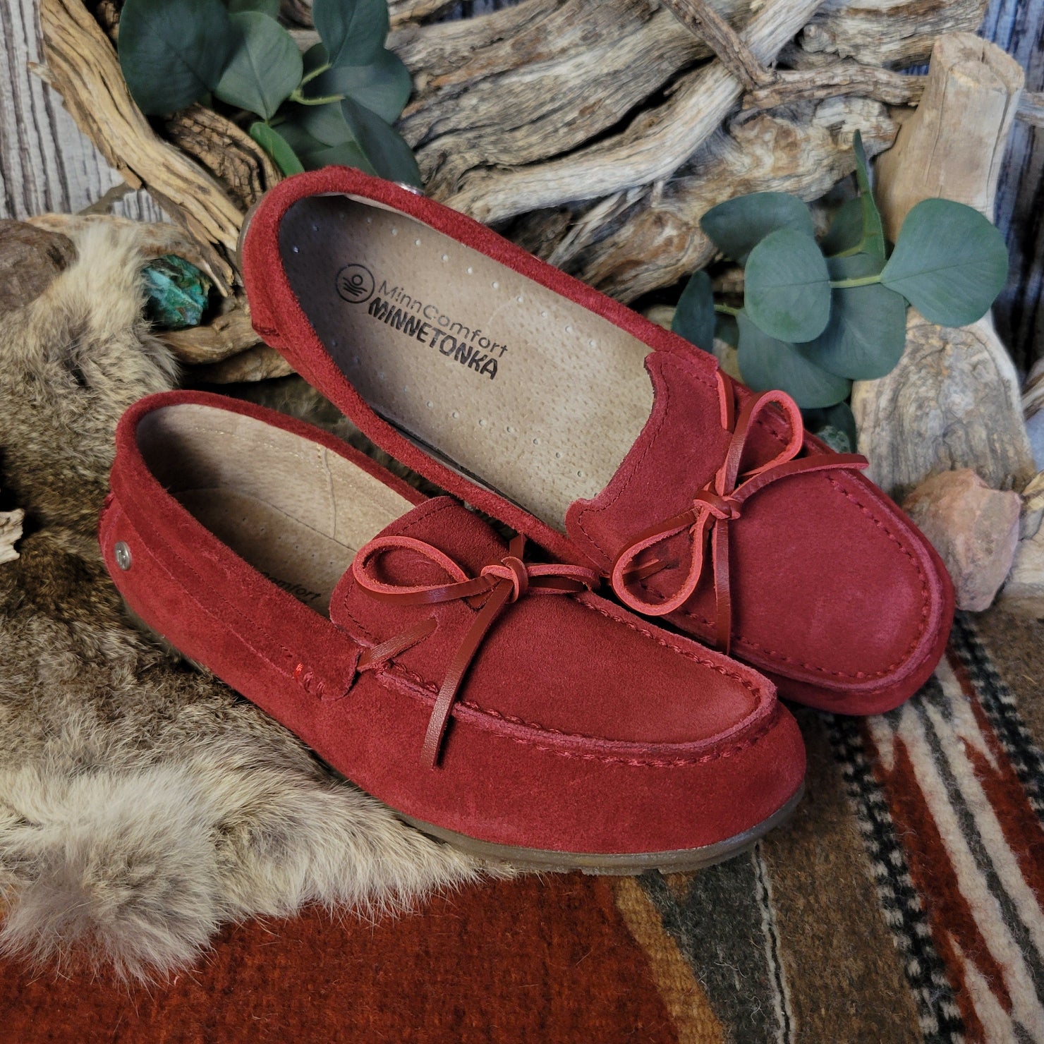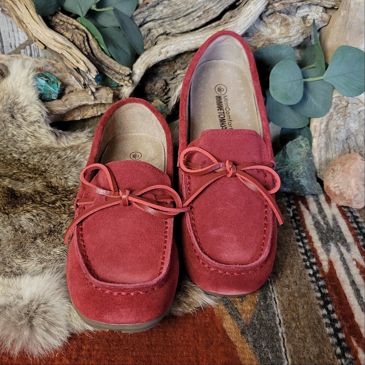 These women’s "Loafer Moc" by Minnetonka blend rich color with timeless western inspired style for a bold yet classic look. Crafted for all day comfort wear, they add a confident cowgirl touch to any outfit.