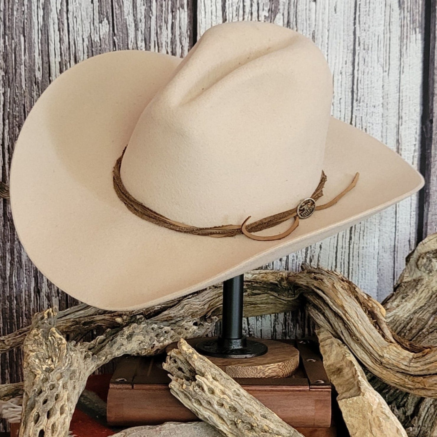 The "Boulder" wool felt hat by Bullhide combines premium craftsmanship with timeless western design. Crafted in rich buckskin, this premium wool hat features a classic felt twine hat band that enhances its rugged yet refined appearance.