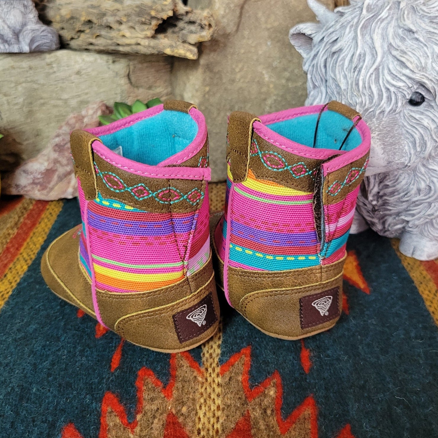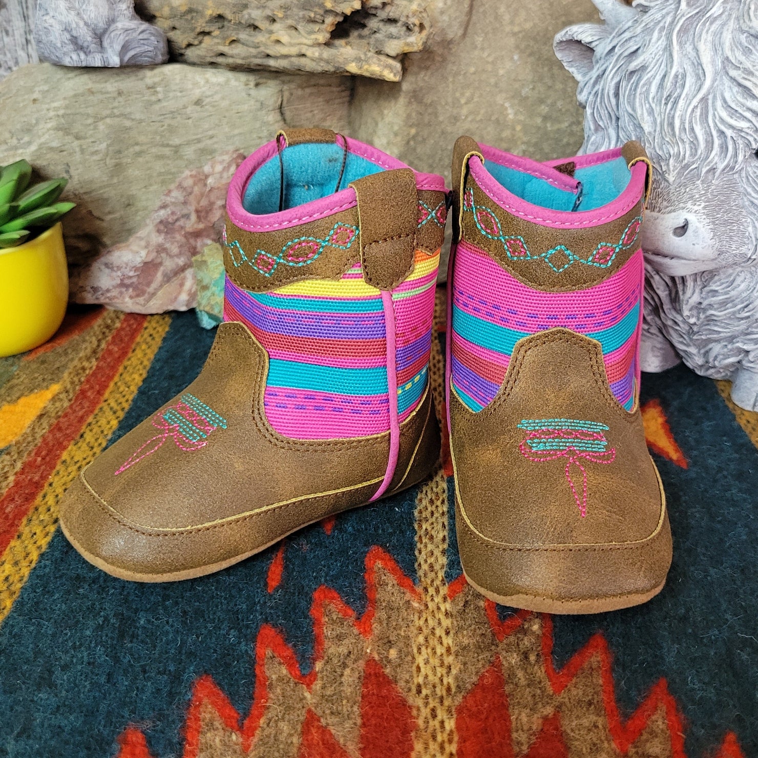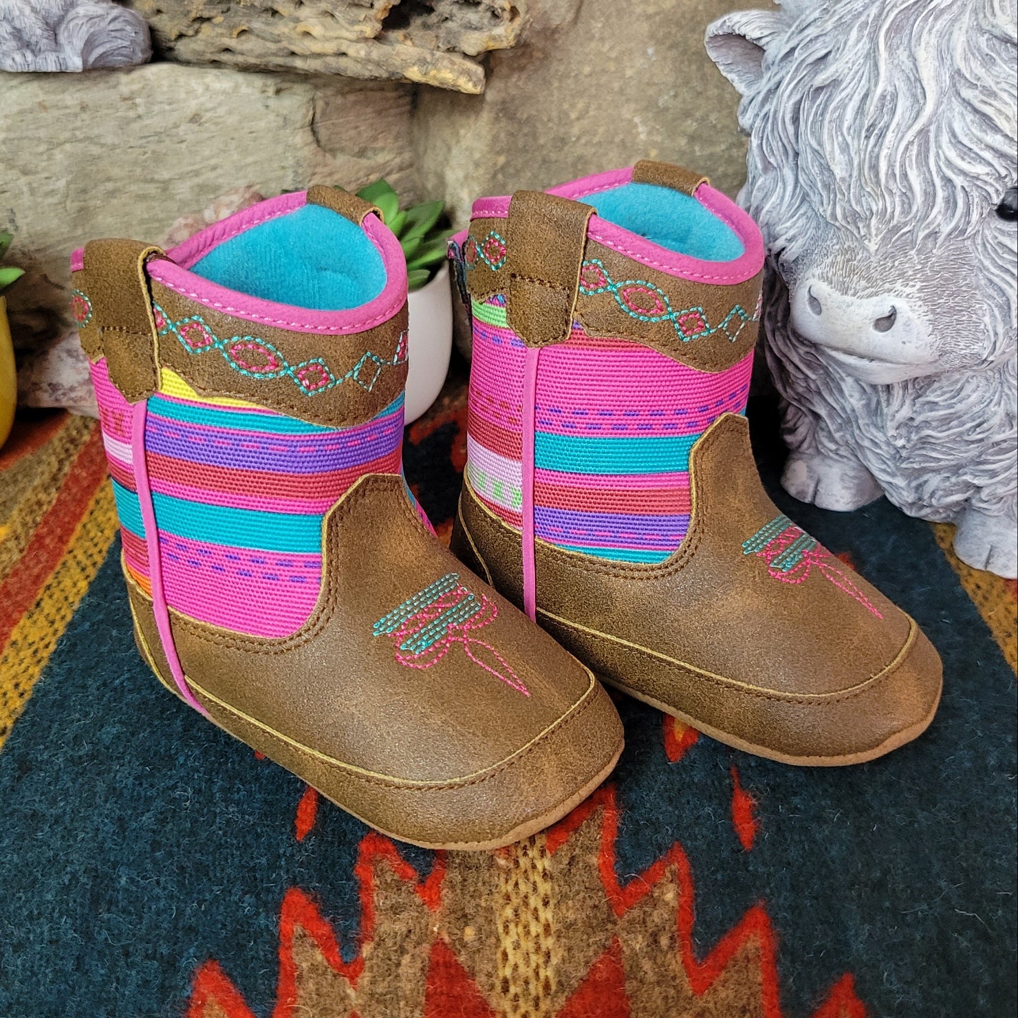 The "Camilla" Lil buckaroos booties bring sweet western charm to your little wrangler’s first adventures, with classic cowboy-inspired details in a soft, baby-friendly design. Featuring a secure Velcro backing and non-slip soles, they’re made for easy on and off play and steady little steps.