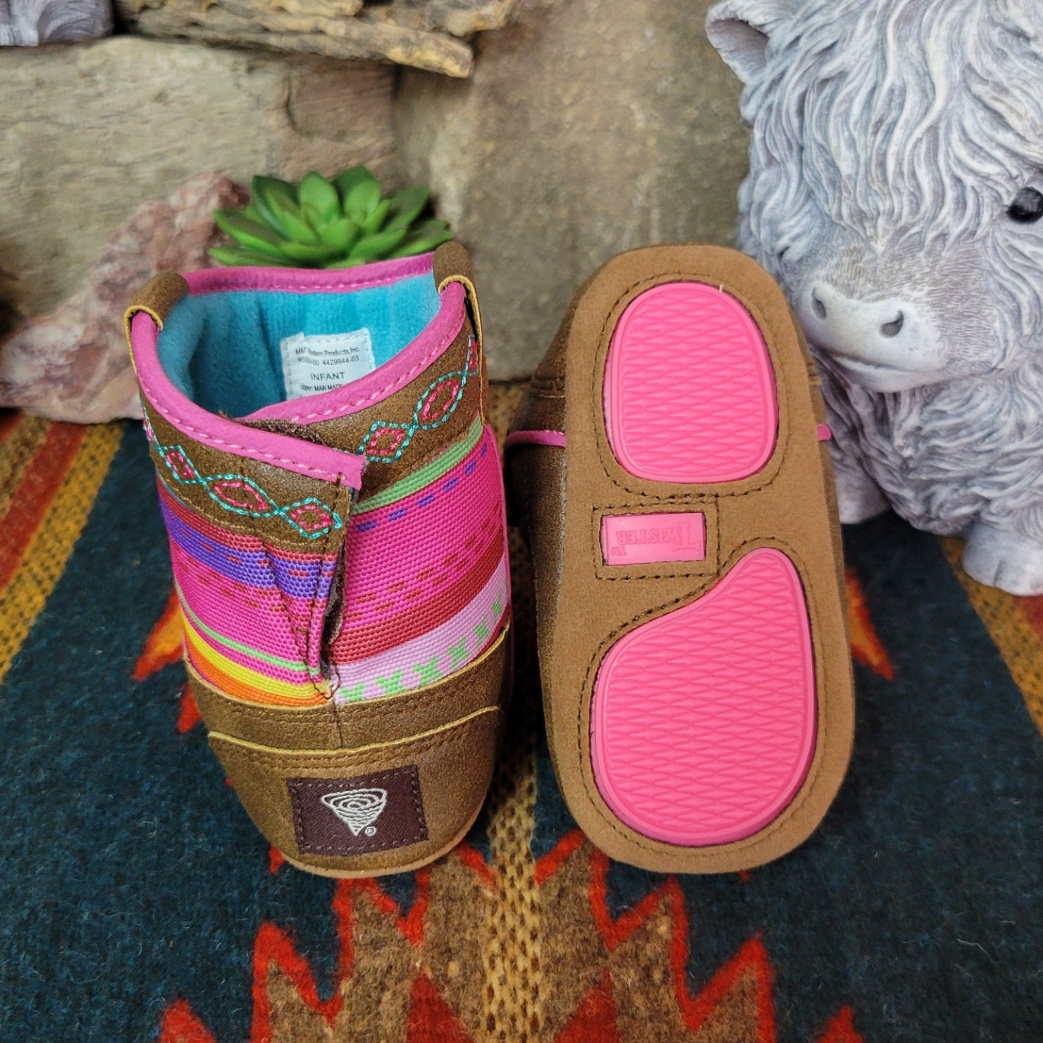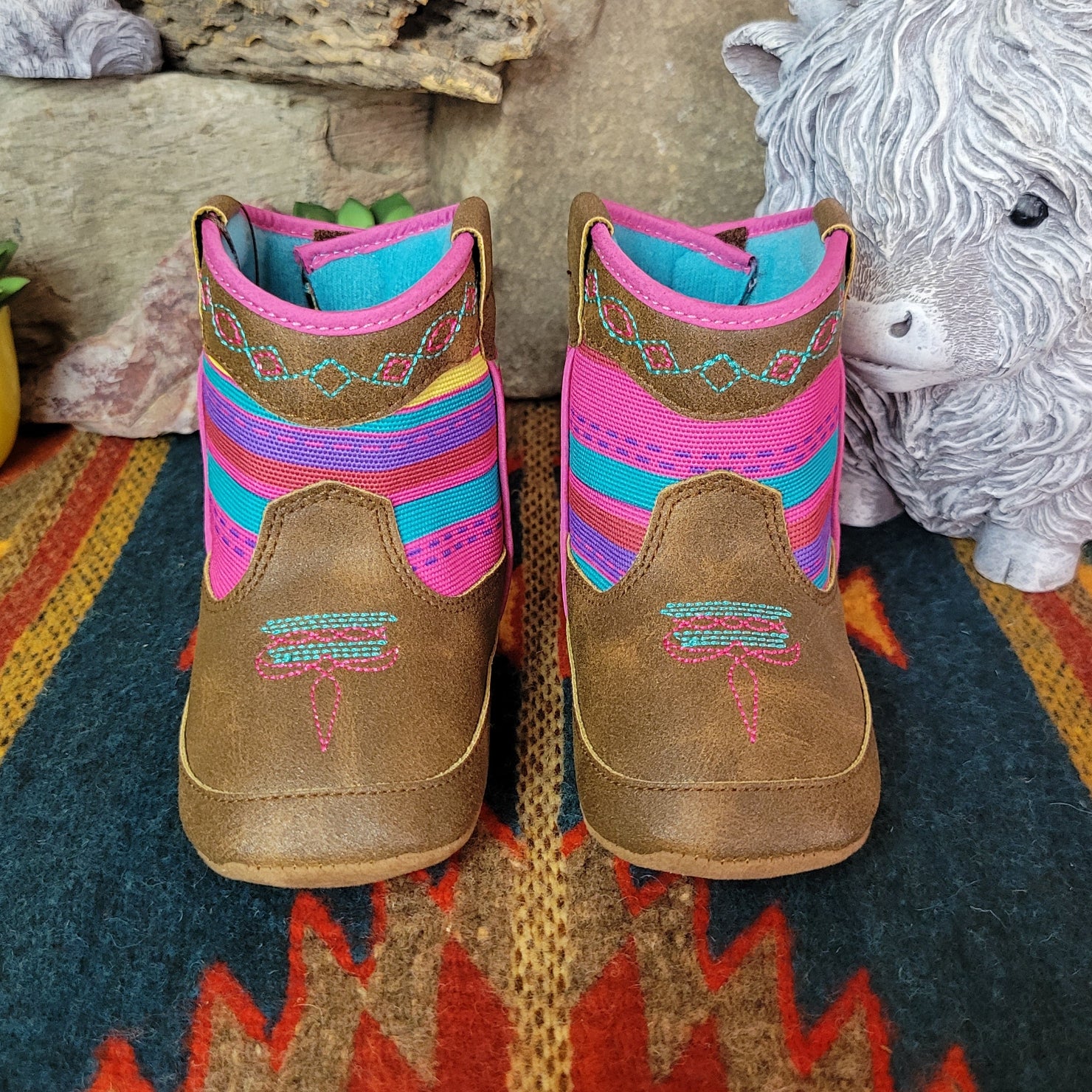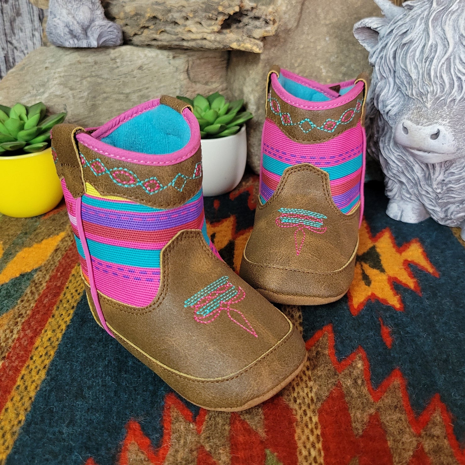 The "Camilla" Lil buckaroos booties bring sweet western charm to your little wrangler’s first adventures, with classic cowboy-inspired details in a soft, baby-friendly design. Featuring a secure Velcro backing and non-slip soles, they’re made for easy on and off play and steady little steps.